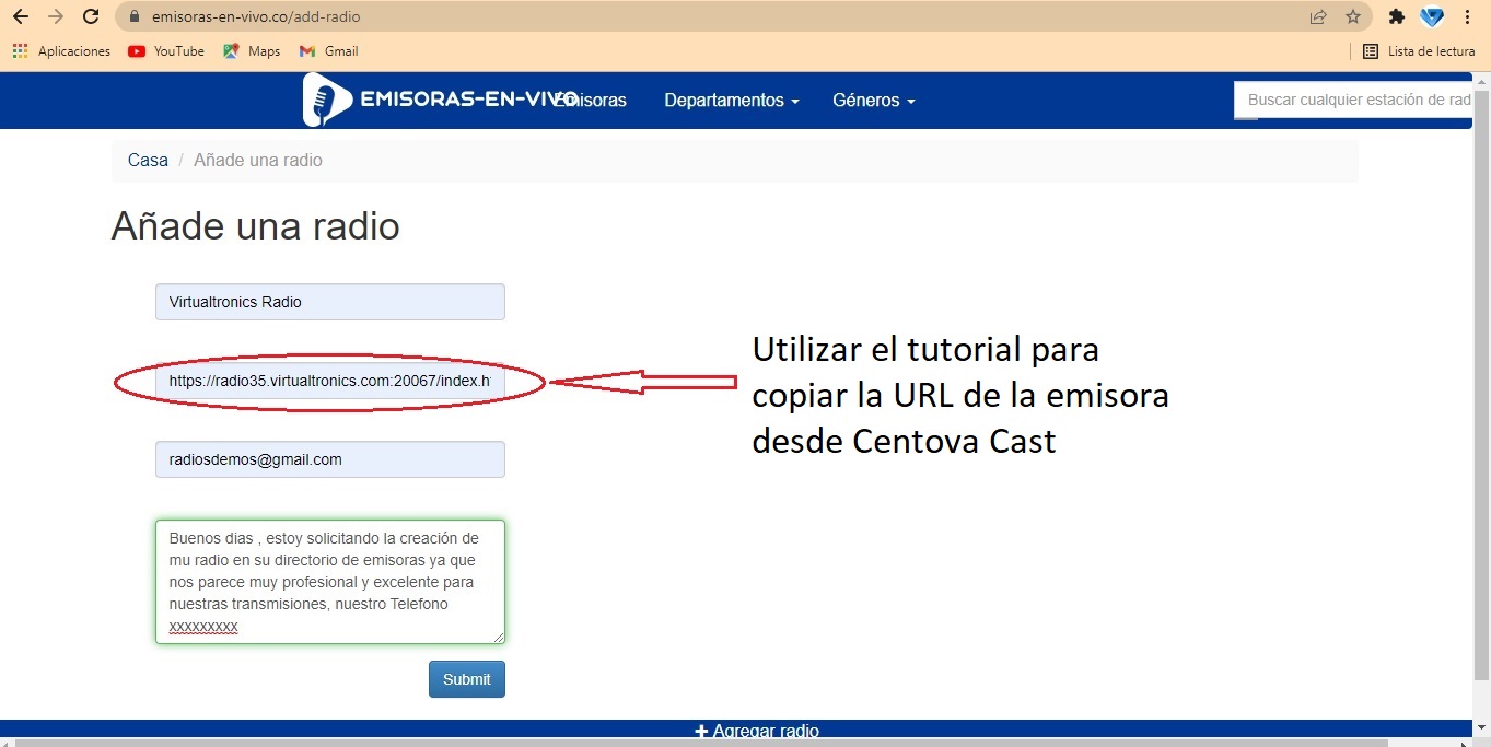 Para indexar su emisora de Radio Streaming en el directorio de radios Online colombia.com usted...